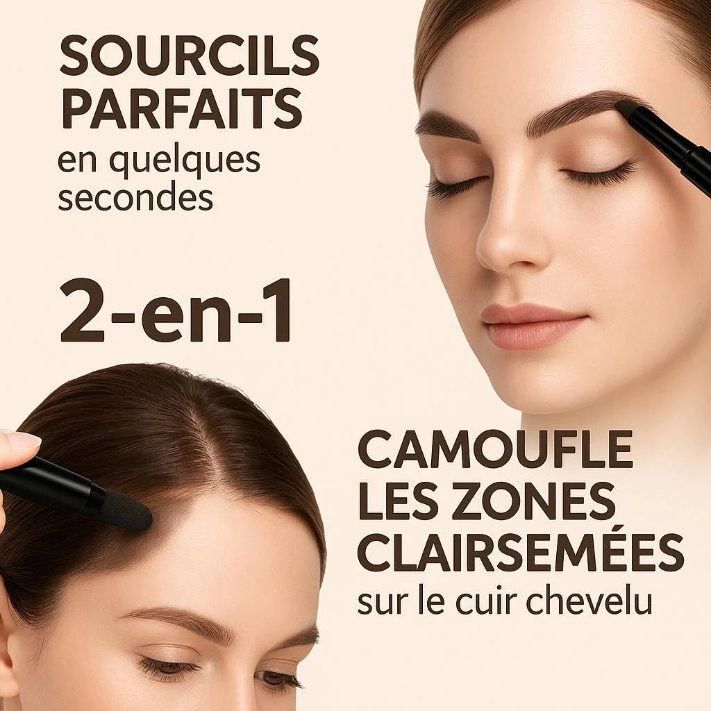 Cette poudre n’est pas seulement pour les sourcils : elle est aussi parfaite pour camoufler les zones clairsemées sur le cuir chevelu, les racines dégarnies ou même les débuts de calvitie. Elle redonne un aspect naturel et dense à vos cheveux en un seul geste, sans traces visibles